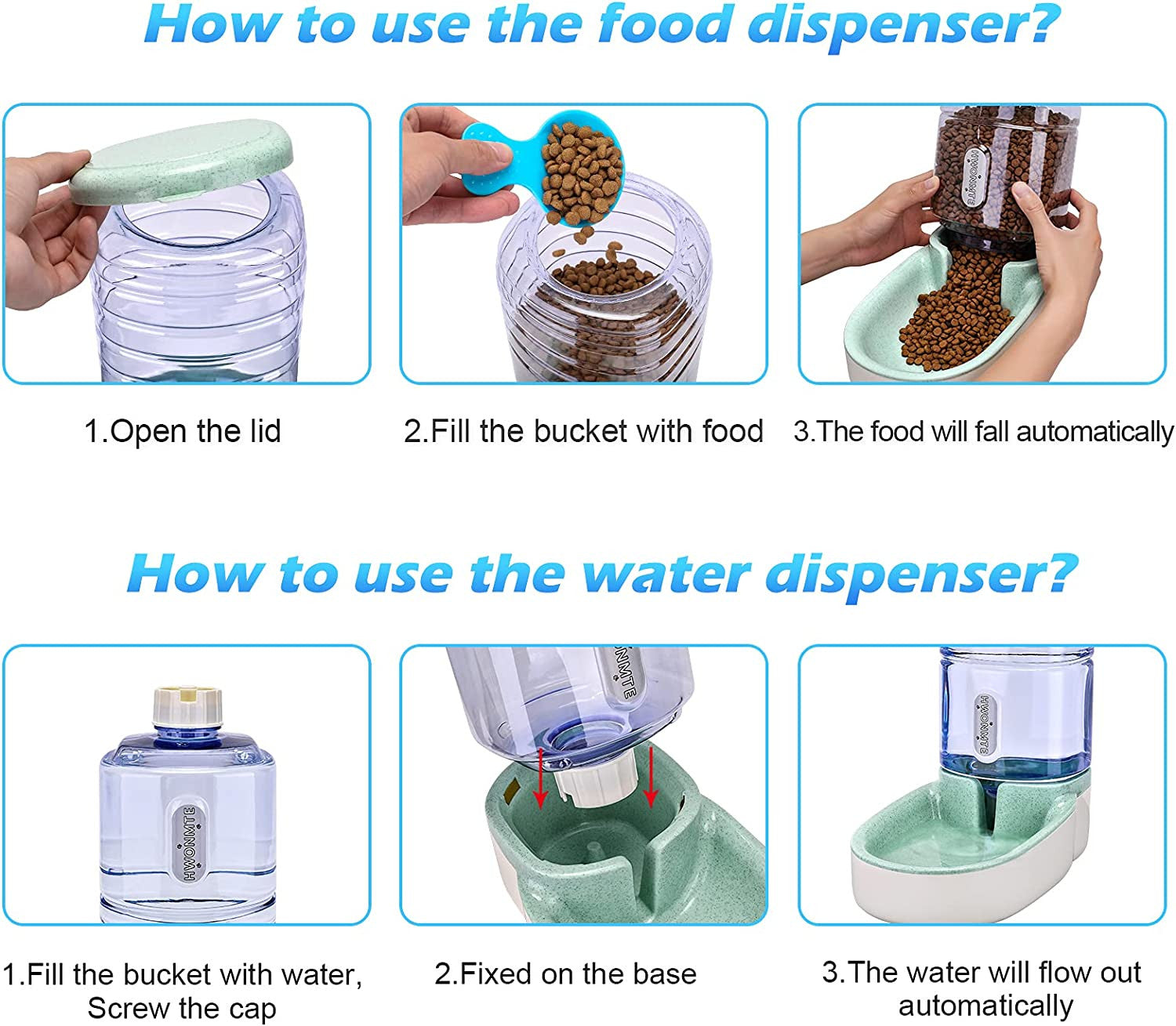 Funciona con el sistema de gravedad para mantener el tazón lleno de agua o comida sin necesidad de enchufes ni baterías.